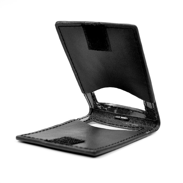 - Une fois ouvert, le porte-badge présente 2 fenêtres transparentes permettant l’insertion de 2 badges de 86 x 54mm